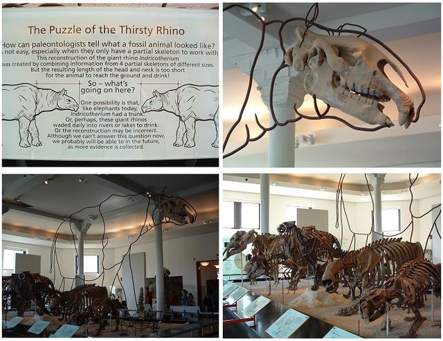 看,跟其他動物化石的比例來看,身後的巨型犀牛的差別就更明顯了!