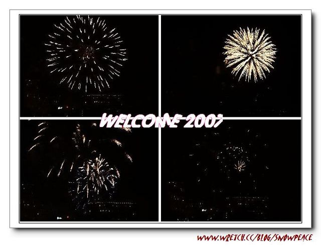 倒數計時的同時,與 CHERYL & CARLOS 聊得正起勁,突然聽到隆隆作響,以爲外面響雷要下雨了,(因爲天氣預測說元旦這天會下雨),好幾秒才隱約聼到爹滴說來看煙火。。。才知道不知不覺中就在 SKYPE 裏跨過新與舊的那一分鐘!