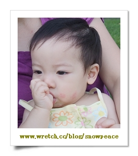 今天早上醒來,居然一下就把小手套給扯掉!屢試不爽,厲害...=.=