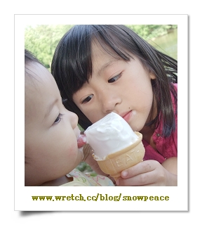 玫瑰園逛累了,alison要吃香草口味雪糕(嗯,這個好吃),也給妹妹嚐嚐,結果欲罷不能...^^"
