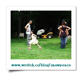 難得相聚,話題不斷,笑聲迭起... 小孩很快玩在一塊兒,在偌大的草地跑來跑去、玩大球捉飛蛾 。
