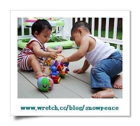 會走會跑的孩子們玩在一堆玩了一整天 ; 這兩個相差不到一個月的孩子也玩在一塊兒哩 ^^