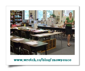 這是附近的另一間小學的課室。 即將升為小學生的桌椅就是不一樣,alison很喜歡,說很 cool~ ^^