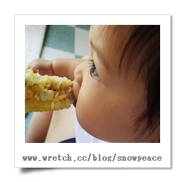 下午看米迷在吃玉米棒, 嘴巴開開,口水流有三寸長... 順勢咬了玉米的尾端,吮吸了起來...想必汁