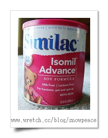 下午到沃爾瑪添購 pedialyte 數瓶, 還買了一罐豆製的配方奶讓emma充飢。