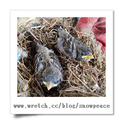 早上屋主夫婦在整理庭院, 發現露台下的橫樑築了一個鳥巢, 取出來看見裏面竟有兩只剛長了翅膀卻不會飛的小小鳥!!