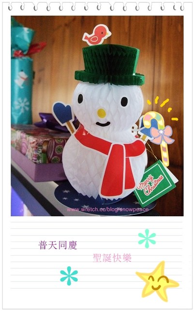 這是路人甲妹夫從臺北寄來的雪人立體聖誕卡
