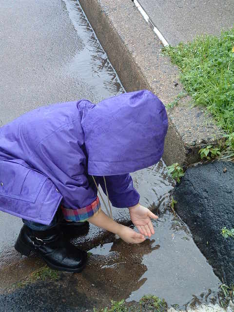 雪寧看到小水灘,很開心唷!